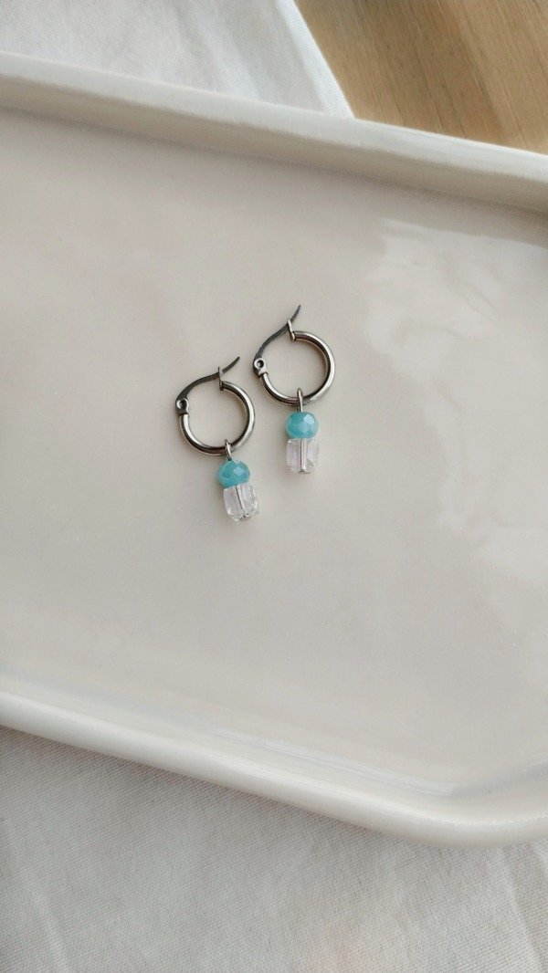 Argollitas de acero quirúrgico, con dije de cristales de vidrio.