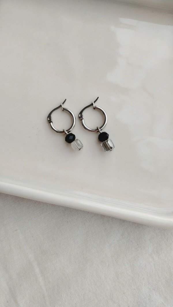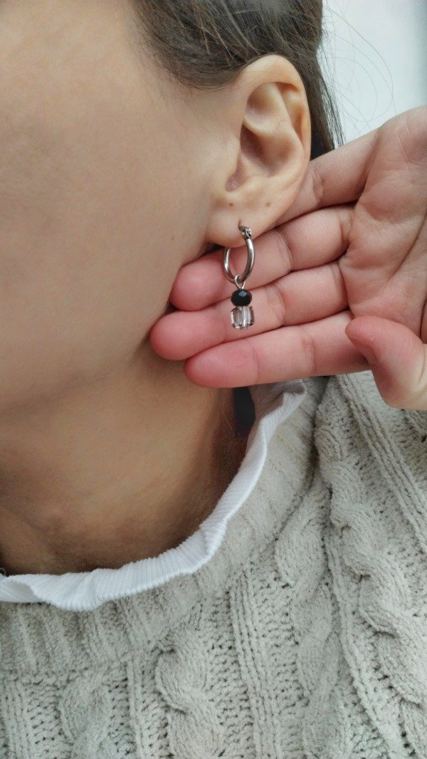 Argollitas de acero quirúrgico, con dije de cristales de vidrio.