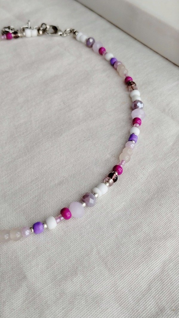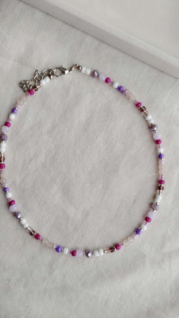 Collar realizado con cristales, bolitas de vidrio y mostacillas manteniendo una gama de colores preciosa.