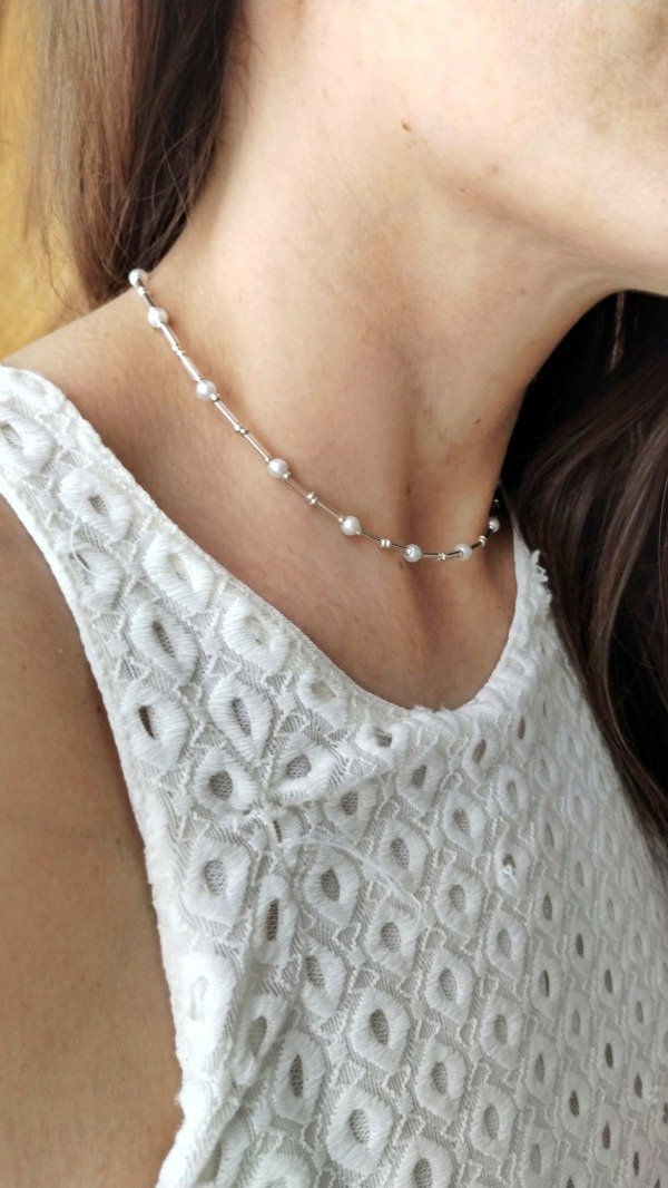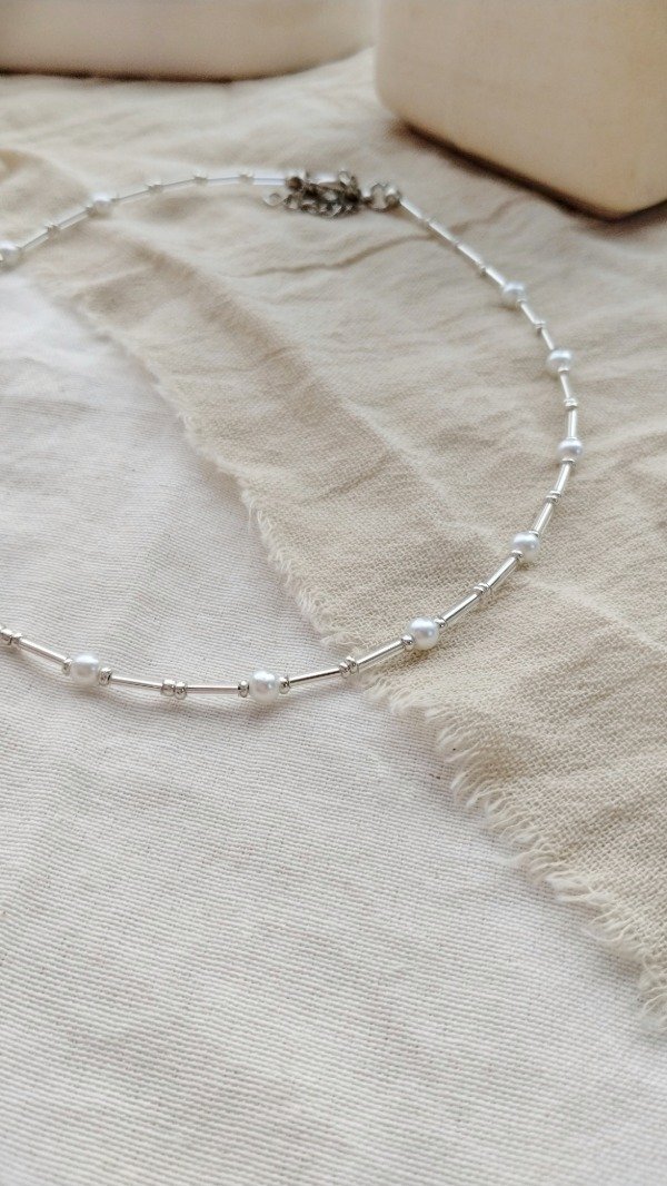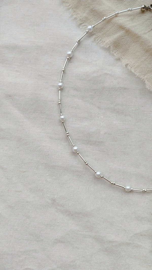 Collar enhebrado con canutillos y perlas de vidrio.