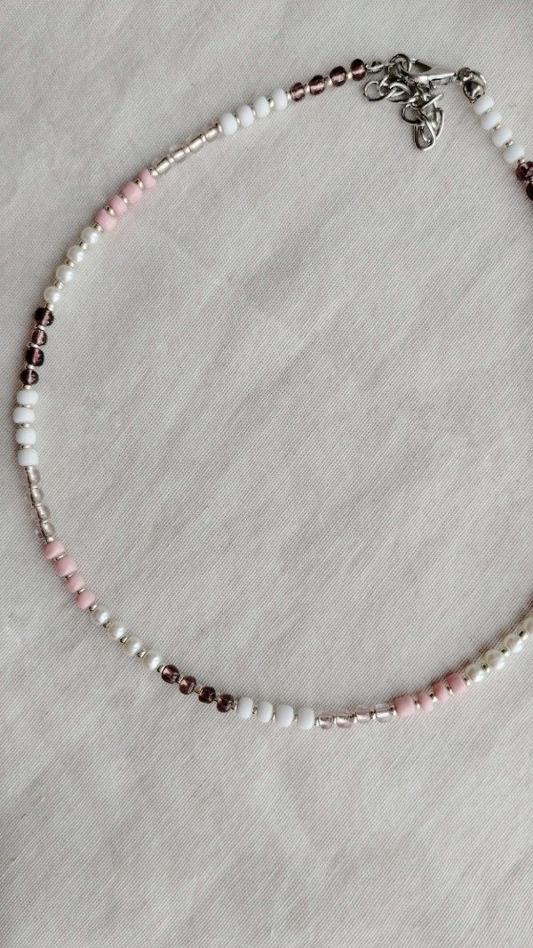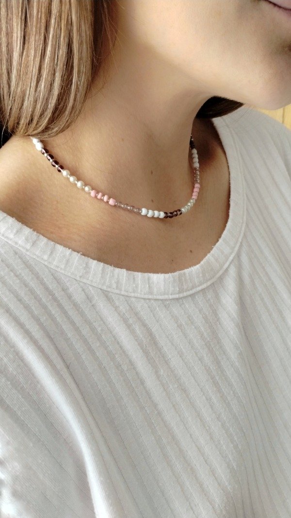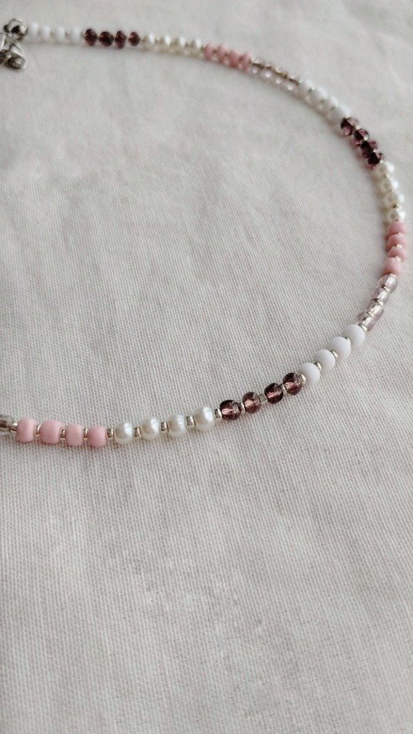 Collar realizado con mostacillones y perlas de vidrio.