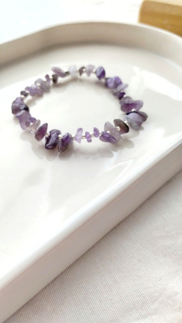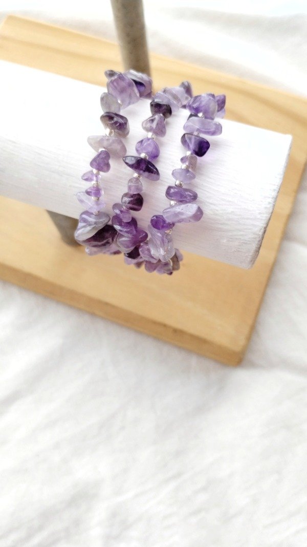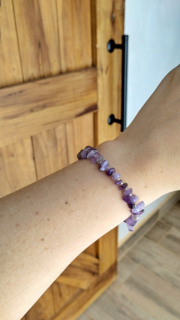 Pulsera elastizada. Realizada con escallas de piedras naturales.