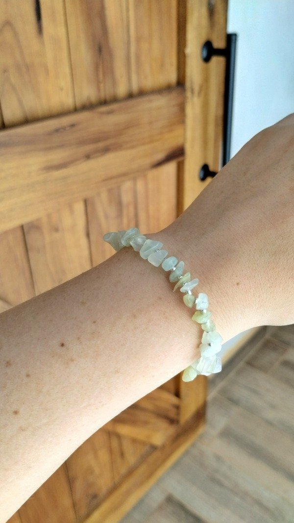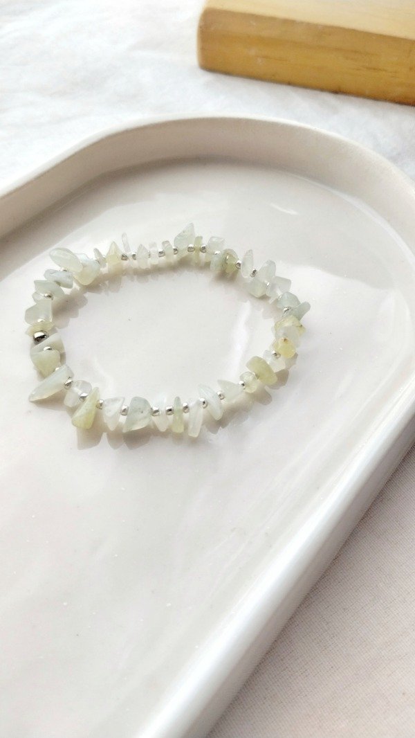 Pulsera elastizada. Realizada con escallas de piedras naturales.