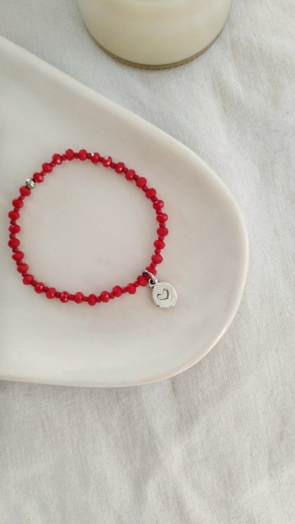 Pulsera elástizada. Realizada con microcristales y dije de fundicion.