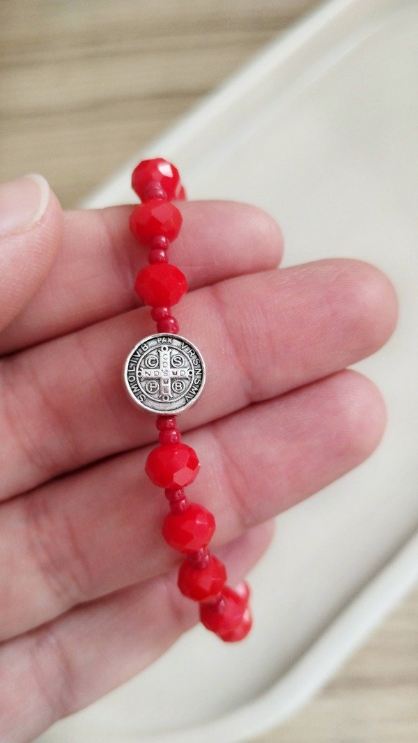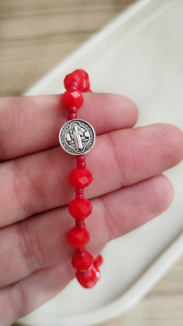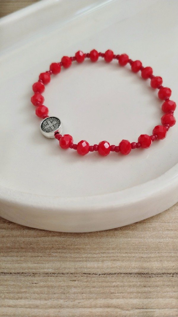 Pulsera elastizada. Realizada con cristales de vidrio, mostacillas y pasante de fundicion.