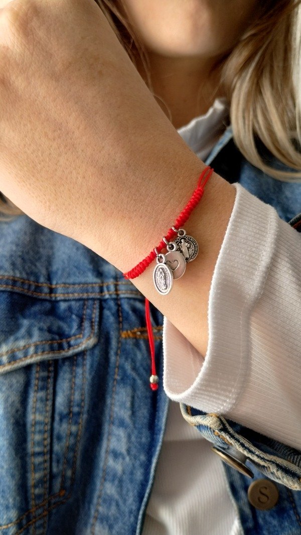 Pulsera tejida en macramé, regulable, con dijes de fundicion.