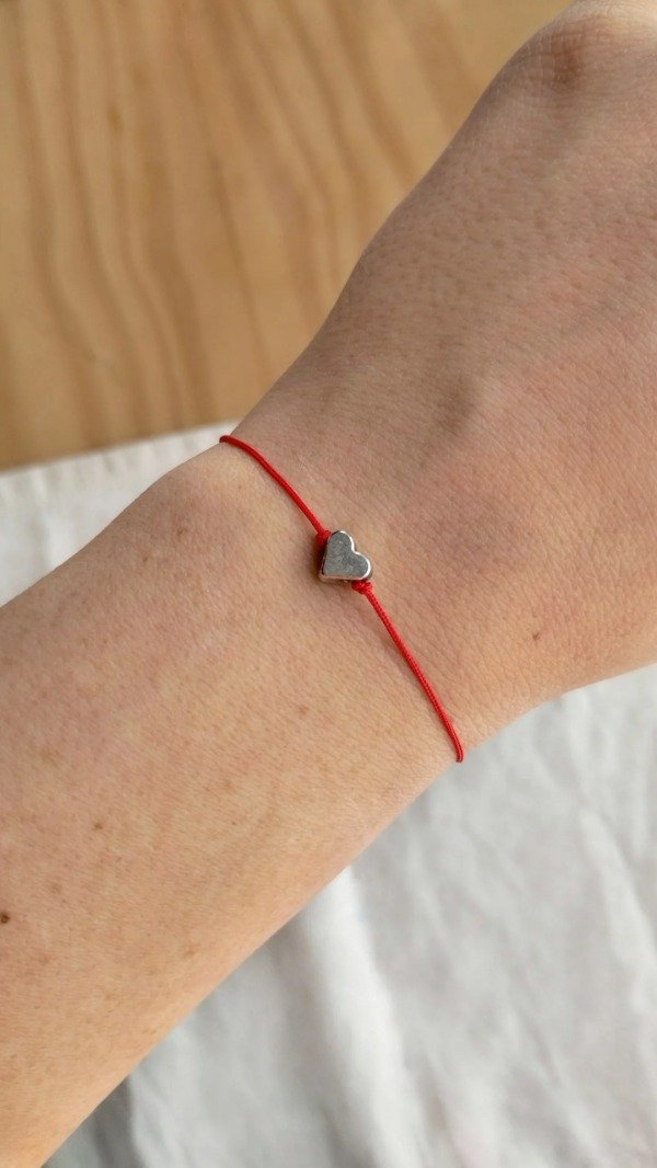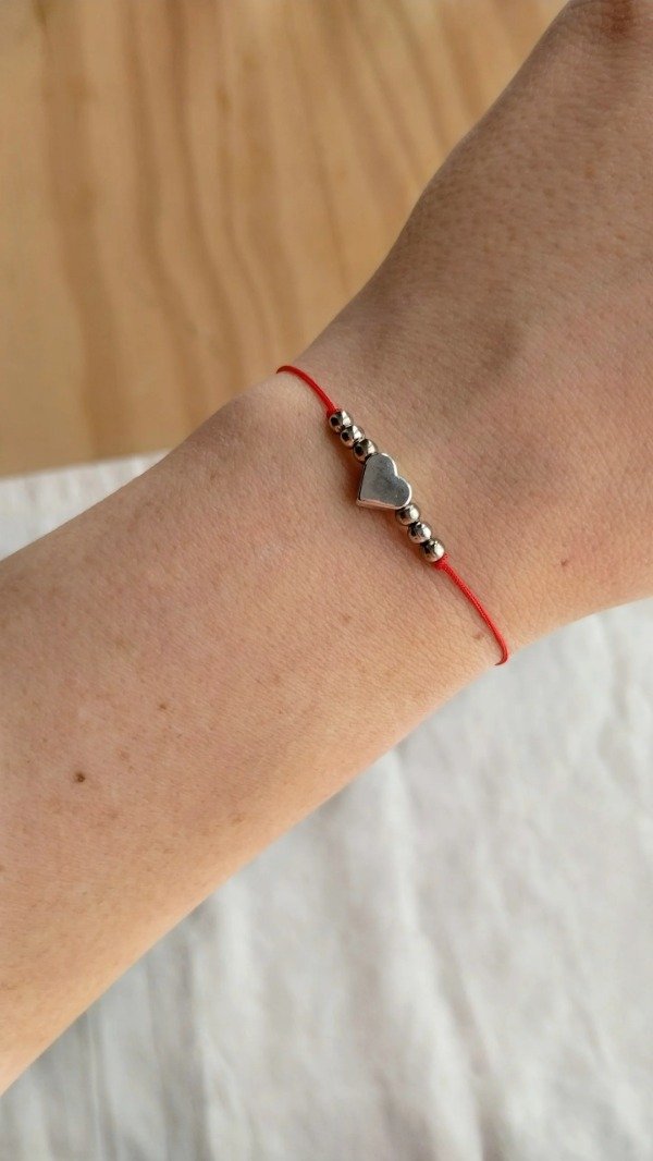 Pulsera de hilo regulable. Con dije y bolitas de fundición.